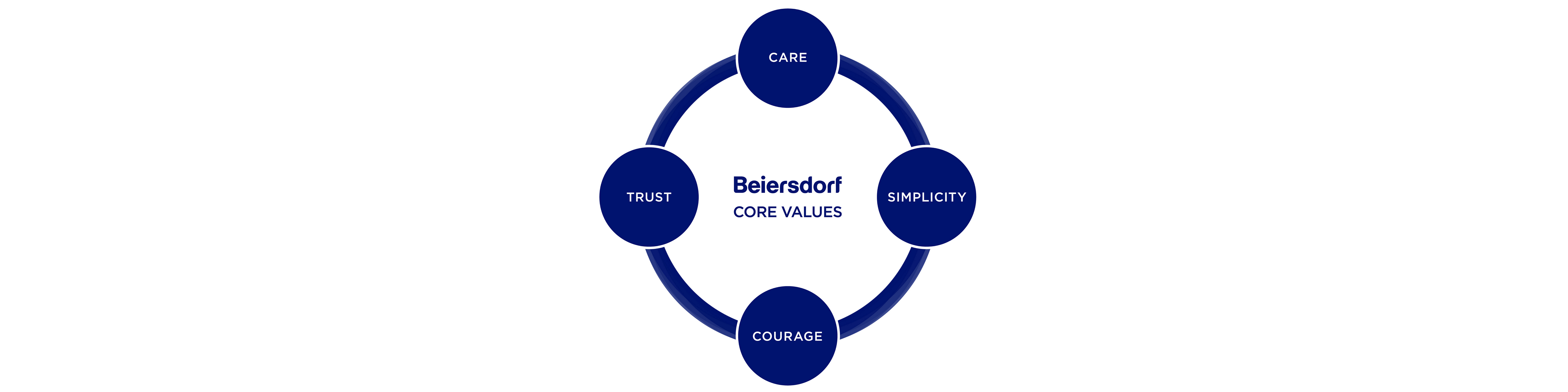 Nuestros cuatro valores clave dan forma a nuestra cultura desde el inicio y siguen siendor elevantes hoy. Ellos son nuestra guía y se aseguran de que hablemos un mismo idioma en todo Beiersdorf. Nos proporcionan una orientación hacia nuestro comportamiento diario y sirven como punto de referencia al momento de evaluarnos.